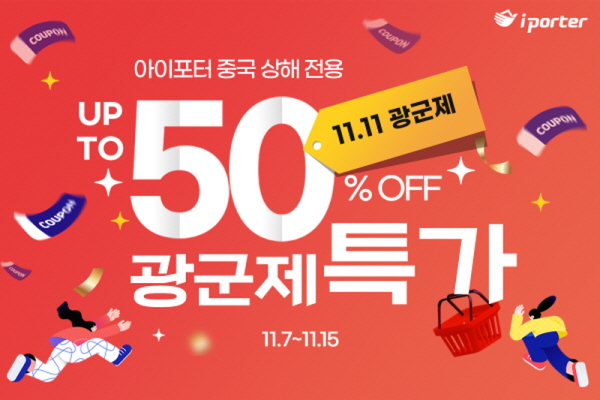 [딜라이트닷넷=이민석 기자] 해외직구 물류대행 전문 기업 아이포터(iPORTER)가 중국 최대 쇼핑 행사인 ‘광군제(光棍節, Singles’ Day)’를 맞이해 중국 상해센터 해상운송 배송비 최대 50% 할인 이벤트를 진행한다고 10일 밝혔다.