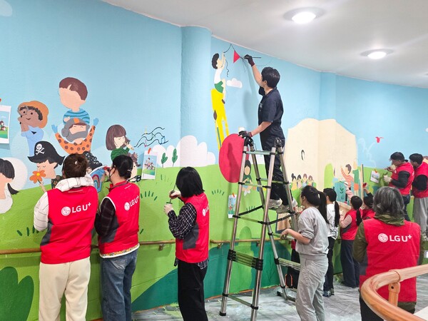 희망도서관 개관과 함께 LG유플러스는 시각장애 학생들을 위한 벽화 그리기 봉사활동도 진행했다. 지난 25일 충주성모학교를 찾은 임직원 20여명은 학교 담장에 약 46.15㎡ 크기의 벽화를 함께 그렸다. 밝은 톤으로 그려진 벽화는 저시력 학생들이 따뜻하고 안정적인 분위기에서 학습할 수 있도록 돕는 역할을 할 것으로 기대된다.