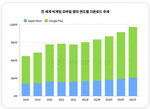 글로벌 모바일 시장 데이터 분석 기업 센서타워(Sensor Tower)는 지난해 전 세계 비게임 모바일 앱 시장에 대해 분석, 오는 2027년까지의 전망을 담은 ‘2023년 전 세계 모바일 앱(비게임) 시장 전망’ 리포트를 31일(현지시각) 발표했습니다.