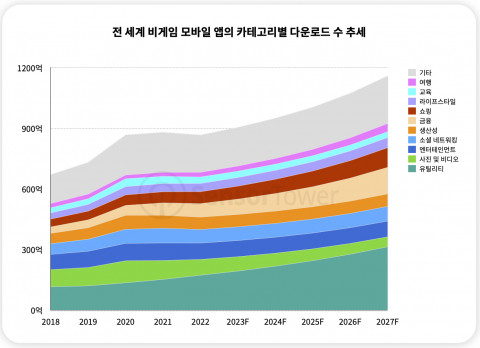오는 2027년까지 전 세계 비게임 모바일 앱 다운로드가 1100억건 넘어설 것으로 예상된다는 리포트가 나와 세간의 주목을 받고 있습니다. 엔터테인먼트부터 소셜 네트워킹, 생산성 카테고리 사업자들이나 업계 종사자들이라면 이같은 동향을 눈여겨볼 필요가 있겠습니다.