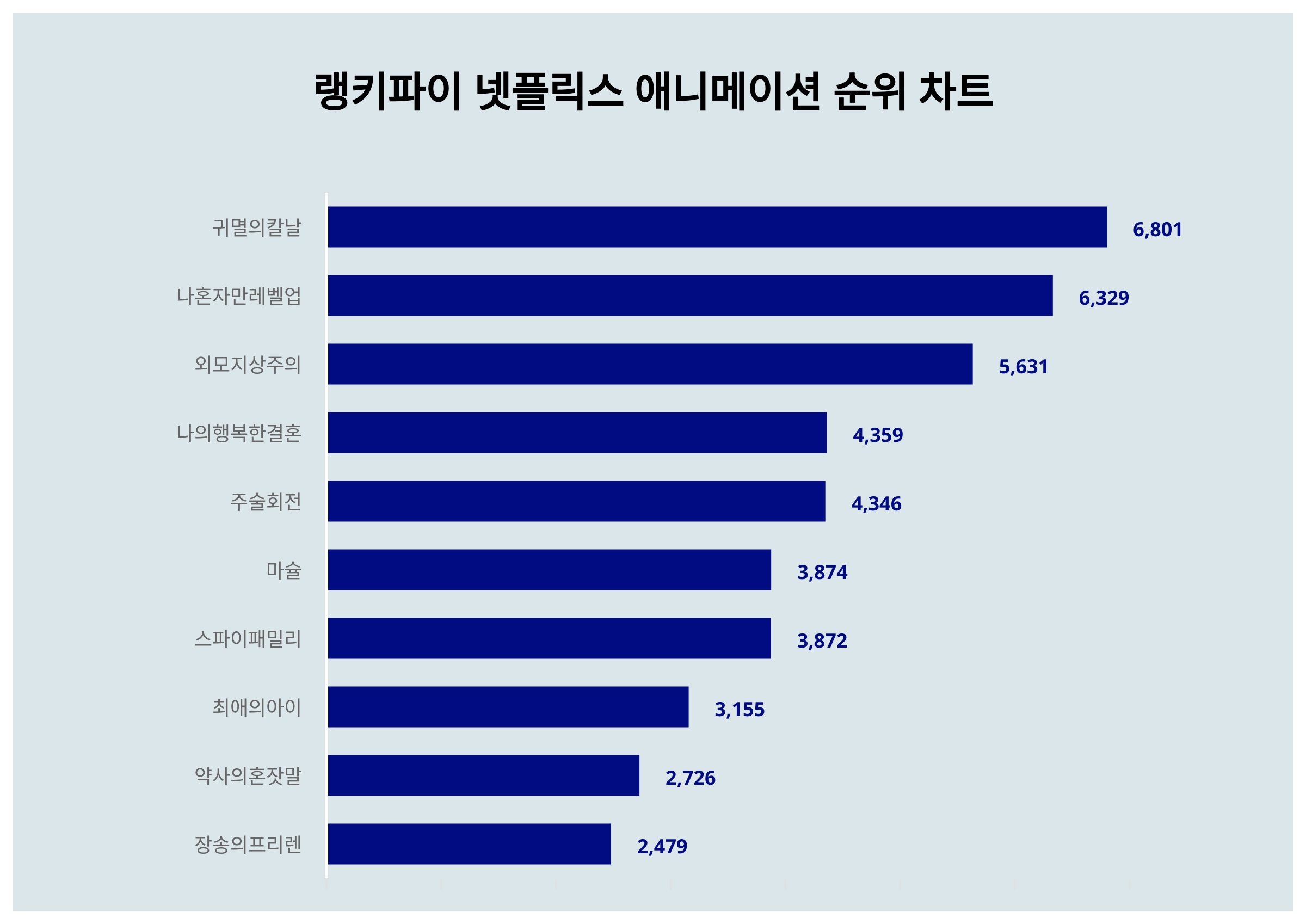 | 1 | 귀멸의칼날 | 6,801 | 8,589 | -1,788 | -20.8% |