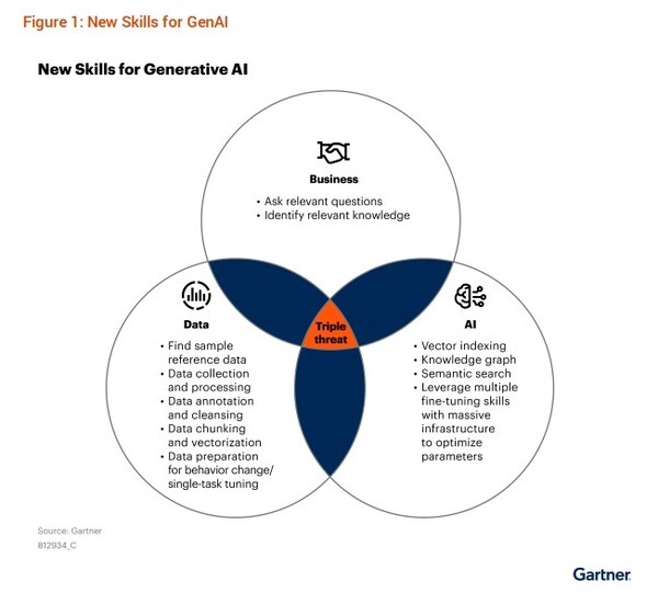 [딜라이트닷넷=이상일 기자] 가트너(Gartner)는 생성형 AI 도입을 위한 새로운 핵심 역량 3가지 보고서를 통해 생성형 AI(Generative AI)의 도입에 있어 전통적인 데이터 과학 접근법과 기술이 충분하지 않다고 경고했다. 이에 따라 데이터 및 분석(D&A) 리더들은 생성형 AI의 잠재력을 최대한 활용하기 위해 새로운 기술을 개발해야 한다고 강조했다.