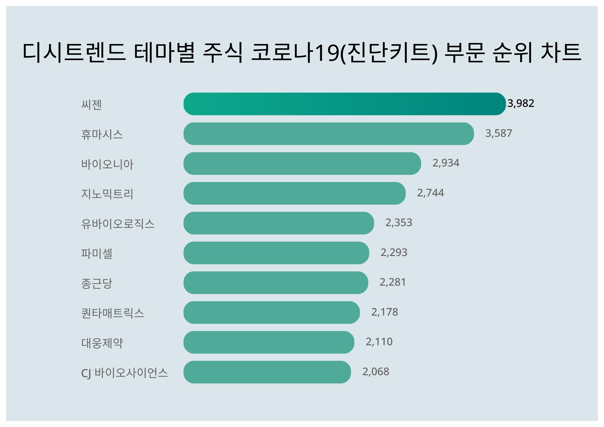 | 1 | 씨젠 | 3,982 | 74% | 26% |
