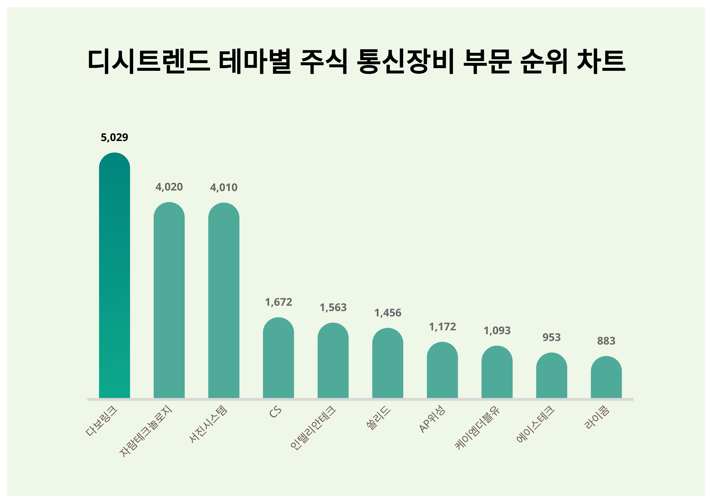 [출처: 디시트렌드 테마별 주식 통신장비 부문 인기지수 분석 결과]