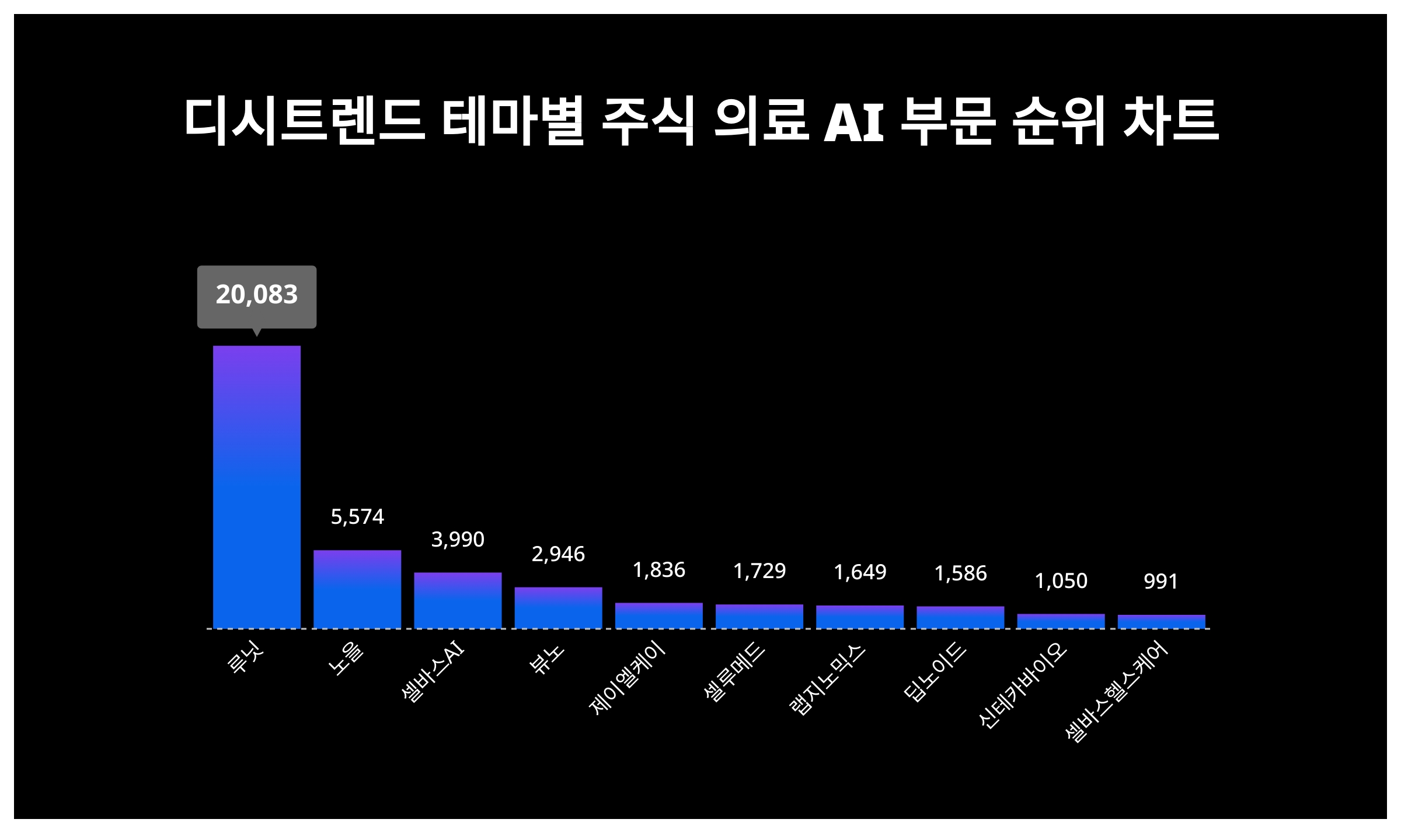 [출처: 디시트렌드 테마별 주식 의료 AI 부문 인기지수 분석 결과]